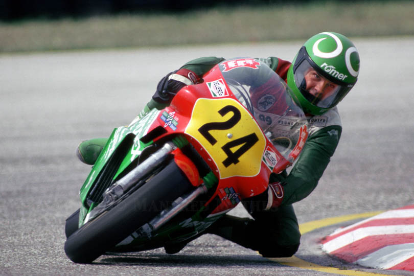 Bruno Kneubühler a eu une carrière remarquable par sa longévité et sa polyvalence, ayant concouru dans toutes les catégories de Grand Prix, de la 50cc à la 500cc.